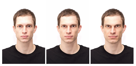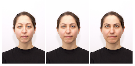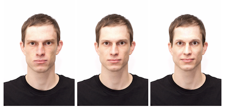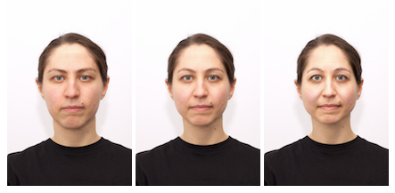 Examples of an original male and female face (middle) and versions with reduced (left) and enhanced values (right) on agency and communion.